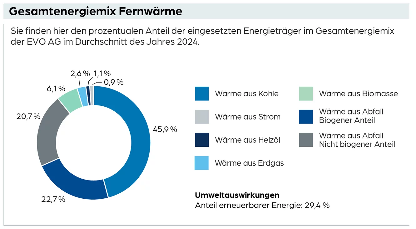 Der Primärenergiefaktor der EVO Fernwärme beträgt 0,25.