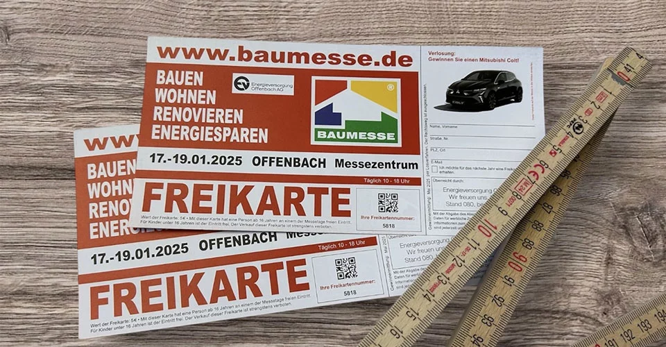 Besuchen Sie uns vom 17. bis 19. Januar 2025 auf der Baumesse in Offenbach. Mit EVO MehrWert erhalten Sie den Eintritt kostenfrei. Holen Sie sich jetzt ihre Eintrittskarte.