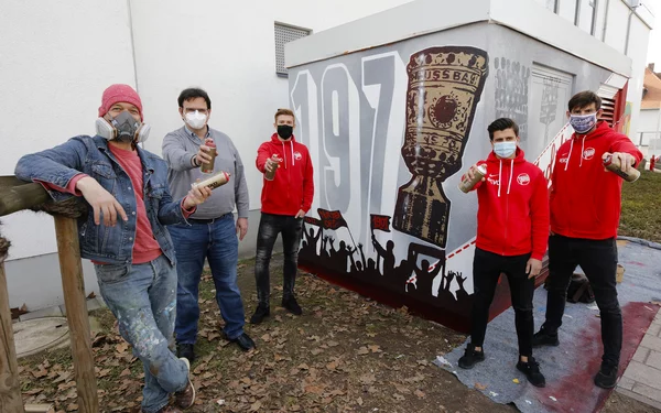 In diesen Abschnitt gehören auch ein riesiger DFB-Pokal und der Schriftzug „1970“, die an den DFB-Pokalerfolg des OFC erinnern. Auf der anderen Seite der Station wird in kräftigen rot-weißen Farben die lebendige Fan-Szene der Moderne dargestellt. Das Ganze sei mit Hilfe von vorgefertigten Schablonen und mit der Spraydose in der Hand nach einer Idee der EVO entstanden, berichtete der Spezialist für großflächige Graffitis. Das Design sei bewusst in „Street-Art“ gehalten; im Stil des weltweit bekannten Künstlers Banksy. Für die EVO hat Dörr schon einige Objekte in Offenbach besprüht – wodurch sie zu Kunstobjekten geworden sind. Dazu zählen etwa die Stromstation am Büsing-Park und die Station an der Bismarckstraße. Für die Offenbach-Post hat Dörr eine Wand im Foyer des Verlagshauses künstlerisch gestaltet.
