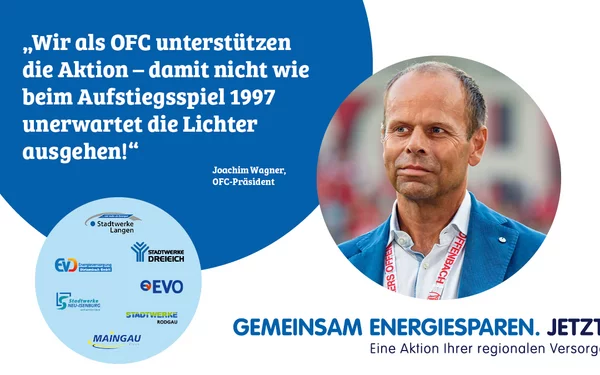 Die gemeinsame Energiespar-Kampagne der Versorger in Stadt und Kreis Offenbach beginnt an diesem Wochenende – im Internet, auf Facebook, Instagram und Newslettern. Als Werbeträger unterstützen die Kampagne unter anderem der Offenbacher Kinomacher Daniel Brettschneider, Brauereichef Robert Glaab aus Seligenstadt, die NABU-Blühwiesenexpertin Doris Lerch aus Rödermark, die Unternehmerin Kirsten Schoder-Steinmüller, JSK-Rodgau-Vorsitzender Lothar Mark und OFC-Präsident Joachim Wagner.