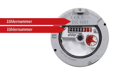 1x kurz den schwarzen Knopf unterhalb des Barcodes drücken > Anzeige aktueller Zählerstand in MWh. Zählernummer ist links unten ersichtlich.